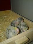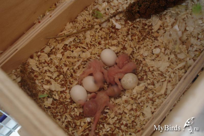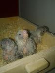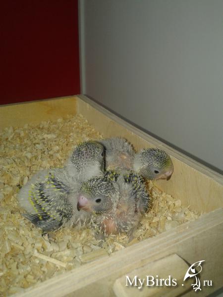 Виталий ZSV Опубликовано 24 февраля, 2013 Автор #20 Опубликовано 24 февраля, 2013 Потихоньку не спеша,подрастает малышня. Вот решил выложить фото малышей.Старшему всего 25 дней,малыши уже уверенно держаться вместе со своими одно гднездками на жердочке. Три старших малыша,имеют окрас оперения зеленый классический.Вот такие получились у меня малыши зеленого ряда. Ну а три других птенца,полностью отличаются от своих старших родственников,окрасом оперения.Выкладываю фото четвертого птенчика. Малышу 18 дней - а он уже крепко держится на жердочке.Что характерно в данных птенцах,у всех малышей очень большие и длинные ноги.