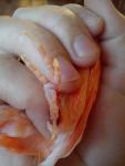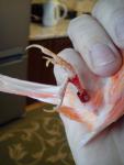 Факел-Нимфа Опубликовано 28 января, 2013 #1 Опубликовано 28 января, 2013 (изменено) Друзья, здравствуйте! Прошу о помощи. У кенара застряла лапка между прутиками клетки. Не знаю, сколько он пробыл в таком состоянии, мы пришли с прогулки с дочкой, и я услышала, что он трепыхается в клетке как-то странно, подхожу, а он висит на лапке в углу клетки... ( лапка застряла вот в этом месте, там в самом углу расстояние между прутиками книзу сужается, видимо он лапку просунул сверху, а потом она у него вниз уехала и застряла, я его достала, переместив лапку наверх. Фото лапки вот. На лапке кровоподтёк от трения об прутики, лапка немного опухла, наступать на неё кенару, конечно, больно. Иногда она у него как-то неестественно выворачивается наружу, иногда нормально. Он ей либо аккуратно ставит на жёрдочку, либо кладёт той частью лапки, которая выше кисти ( не знаю, как это анатомически назвать, простите). На перелом не похоже, возможно вывих... Рук моих не пугайтесь - экзема. Звонила в местную ветеринарную клинику, мне сказали, что им нужен рентген, а ближайший рентген в Одинцово (мы живём в Краснознаменске) находится, у меня нет никакой возможности сейчас туда ехать... (( т.к.оставить дочку некому, родственники, с которыми я обычно оставляю, болеют коклюшем. Ехать на маршрутке с трёхлеткой, которую тошнит в автотранспорте, и с больной птичкой за пазухой не представляю возможным... Можно ли что-то сделать без рентгена? Изменено 28 января, 2013 пользователем Факел-Нимфа