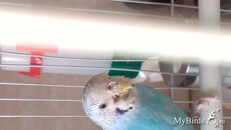 поражон а не возле него. Сейчас кеша часто мотыляет головой чешится об жёрдочку об клетку и только попугайка его