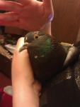 Дорогие друзья! Уже более полутора месяцев я частый гость на многих голубиных сайтах. 07.12.12. гуляя с сыном на детской площадке, подобрали голубка, который не мог летать, замерзал на снегу. Без особого труда поймав его, принесли домой, отогрели. Никаких симптомов вертячки у птицы на тот момент не было, кроме как характерно чуть повернутой головы+невозможности летать. Голубок пытался взлететь, один раз сиганул на шкаф, после чего был благополучно пойман и водружен в коробку. Клевал сам, пил много и обильно, гадил тоже. Только в 20-х числах мы смогли отвезти его к орнитологу, который поставил диагноз "вертячка". Прописал уколы Цереброзилатом. Кололи 3 дня. Не смогли колоть. С 28 декабря перешли на стандартную схему - фоспринил 0.1-0.3 в клюв+ пироцетам+ Радостин антистресс. Голубь получил фоспринил каждый день с 28.12 по 15.01.; пироцетам каждый день с 28.12 по сей день и делее, Радостин Антистресс - 2-3 капли в поилку с 28.12 с перерывами. Покупал ему Мильгамму - прокапал по 0.1 мл на 1 мл воды три дня, в это время радостин не давал. Заметил рвоту в виде как бы отрыгивания пищи. Мильгамму сразу давать перестала. Даю ещё Карсил. Клюет сейчас сам, но не очень хорошо. Но все-же САМ ест. Кормлю кормом с Садовода из "Голубиного рая". Любимые съедает, не любимые - пшеницу и кукурузу оставляет.Днем гуляет по кухне, вечером спит в специально оборудованной ему коробке, с окошками, дверкой и мягким пандусом для сна. На данный момент прогресс в лечении есть, моя победа , что может клевать сам, раньше приходилось самому докармливать, закутывать, что бы меньше мотало ночью, это было трудное время - первая декада января.Содержится в квартире, в тепле, взвесил - 0,335 г. Порадовало, вроде-бы не худыш....Помет мне его не нравится - жидкость, а в ней как бы мелко надробленные зелёненькие "червячки". В лаборатории "АртВет" на м.Китай-город сдали анализы на простейших и глистов - всё чисто, ничего не нашли.