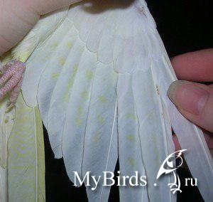 Волна Опубликовано 14 января, 2014 #93 Опубликовано 14 января, 2014 Сфотографируйте четко крыло в развернутом виде, у самок на перьях есть пятна, выглядит это такУ самцов таких пятен нет, чисто белые перья.