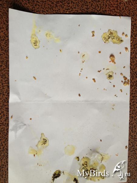 OlegDonetsk Опубликовано 13 марта, 2013 Автор #21 Опубликовано 13 марта, 2013 Доброго времени суток!У Лизы за день помет такой . Мне кажется (ттт), что лапки не такие опухшие и синюшные, сфотографирую утром. А кушает не плохо - на листике зерно не рассыпано и в кормушке целых зерен не много оставила.Продолжаем лечиться