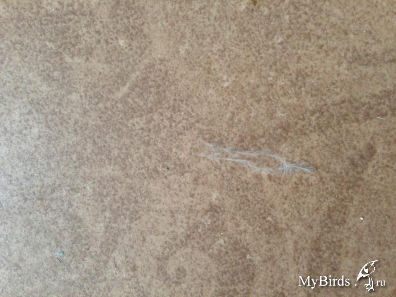 Ну а теперь о проблеме. Два дня назад он начал чесаться и теперь все сильнее и сильнее,а вчера и совсем стал выдергивать пух ( именно пух не перья)у себя. До этого момента всегда было чисто, пудра совсем чуть-чуть выделялась, ну и может одна -две маленьких пушинки в день и то после купания, а сейчас даже два раза в день мыть полы недостаточно, вчера вечером прям сильно выщипывал, утром открыла штук 10-15 пушинок по клетке разбросано было. Сразу хочу отметить, как только купили- вызывали вета, осматривал , брал анализы на простейших, все нормально. Увлажнитель есть, правда обычный, но ниже 48-50 не опускается, в основном всегда 55. Купаться любит 2-3 раза в неделю под душем.