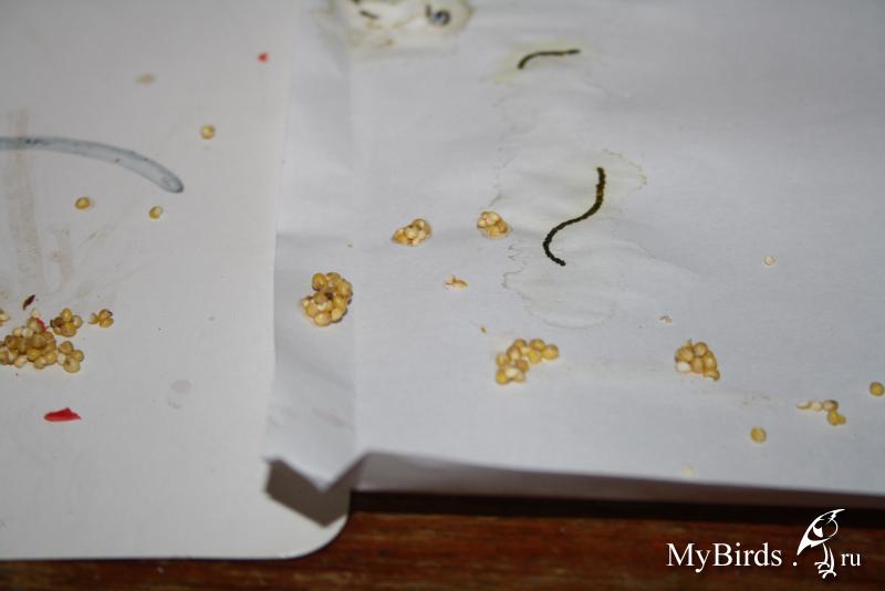 juliette Опубликовано 20 марта, 2013 Автор #4 Опубликовано 20 марта, 2013 (изменено) Спасибо всем отозвавшимся. Я Вам очень благодарен за помощь. Птица активна как всегда. Изменений я не заметил. Вес также стабилен. Про яйцо также читал разные мнения - одни дают другие нет, мы поначалу также не давали, а потом раз попробовали, дали ей яйцо, и оно птице очень понравилось . Теоретически можем и отказаться от него . Но яйцо мы давали и раньше а агрессия появилась буквально неделю назад . Чесно сказать я не видел каким образом Черри сделала ети кучки ( ходил на кухню делать чай но вернувшись бил шокирован увидев их ), но склоняюсь что наверное ето не вариант подкормки мнимого приятеля. Скорее всего ее просто вырвало . В клетке я нашел еще пару таких кучек под остатками пищи . Тешит то что птица активна и вес стабилен, но помет как по мне не очень. Даю фото . Опять светло салатового цвета . Изменено 20 марта, 2013 пользователем juliette