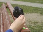 Pilot Mark Опубликовано 10 апреля, 2008 Автор #1279 Опубликовано 10 апреля, 2008 хорошо тут у вас Привет! Несколько страниц тому назад я говорил про галку, которую приметила дочь с моей женой. Так вот, встреча повторилась и удалось ее пофотографировать.Комментарии считаю излишними, т.к. из фото все видно, добавлю только, что галка пробыла со мной на лавочке почти час, за это время моя супруга успела сходить в магазин за сыром для птицы, а потом еще раз за орешками. Галка все это время просидела со мной - играли монетками и очень активно выпрашивала у меня корм (принимая позы как описано у Лоренца).