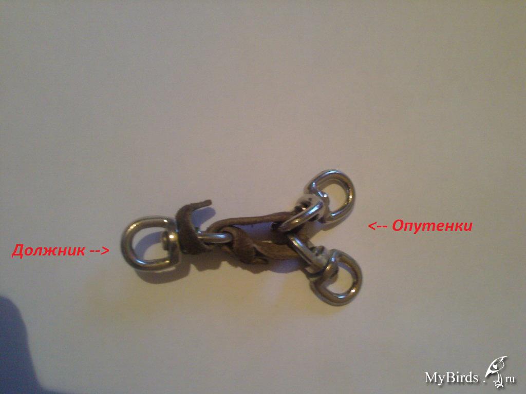 Sterx Опубликовано 2 апреля, 2010 #89 Опубликовано 2 апреля, 2010 Хотелось бы узнать ваше мнение о такой мною придумнной системе крепежа опутенок для врановых...два вертлюга под каждую опутенку не дают им перекручиватся и третий не дает перекручиватся самим опутенкам между собой, придумал такую систему когда брал на содержание дикую здоровою серую ворону,она была очень подвижна (канечно все врановые подвижны,но эта как на батарейках энеджайжер) и перекручивала опутенки очень быстро и очень сильно..