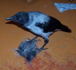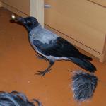 ai_u Опубликовано 18 июля, 2013 Автор #12 Опубликовано 18 июля, 2013 Корвиана, спасибо за подсказки по ветеринарам, мы как раз недалеко живём от названных Вами клиник. С переломанной совой я таскалась в Бэст на Каунасской (только рентген), ампутацию крыла делали друзья-ветеринары, причём собственно подруга сама не рискнула, а обратилась к своим друзьям-хирургам, вот все вместе и делали, а второй перелом вообще сами с мужем на дому собирали. Из-за ремонтных работ у нас долго не было интернета, накопилось много новых вопросов. За те полторы недели, что сооружался вольер, птица в тесной клетке пооббила перья на шее и стала похожа на побитого молью грифа, сейчас отрасли новые, боле жёткие и потемнее, этакий воротничок. Воронка крупненькая, мы решили, что девка и назвали Хельгой. Сейчас Хеля живёт в просторном вольере (то есть кушает, купается и ночует), большую же часть времени проводит на вольном выпасе, активно участвуя в семейной жизни. Внешние паразиты были, причём куча, но не птичьи блохи - те крупные, и "круглые", что ли. Такие были у совы и у появившегося у нас на три недели позже вороны стрижика. В оперении Хельги обнаружилась масса более мелких и более шустрых длинных "вшей". Обработала птиц Фронтлайном, паразитов в оперении не обнаруживается. Прошу совета опытных врановодов в трёх вопросах: 1) Питание и помёт. Поначалу кормили детским питанием, мясные пюре ела охотно, овощи - обманом (пару ложек перед мясом), фрукты - никак, до сих пор заплёванные стены отмываю. Сейчас птица ест охотно и сама, ест, на мой взгляд, много, но мне кажется худоватой, хотя сейчас несколько пооткормилась, киль, на мой взгляд, выступает ещё сильно, но вокруг уже наросло "мяско", а по прибытии чуть не полностью грудина прощупывалась. По совету АСТАРТы я даю птице Карсил (2 таблетки) и Панкреатин (1 таблетка). Собственно рацион: - крупы ячневая, гречневая, пшеничная, рис, пшено, геркулес. Каждый вид варится отдельно, в большом количестве воды до полного разваривания (легко растирается в пальцах, не оставляя твёрдого ядрышка), промывается проточной водой от "киселя" (зачем лишний крахмал, клюв пачкать?), отсушивается на полотенце для рассыпчатости. Готовый продукт при излишке замораживается, потом оттативает сам (с вечера из морозилки в холодильник, к утру готов). Смесь кашек - примерно половина рациона. Вторую половину составляют: - белок. Кальцинированный творог: 1 литр 1% кефира + ампула хлорида кальция, нагреть, но не кипятить, отстоять, чтоб уплотнился, промыть от сыворотки и обсушить на полотенце. И столько же, сколько творога, даю куриной грудки или нежирной морской рыбки (рыбка - редко). Грудку предпочитаю замораживать и тереть на тёрке, если дать кусочками - начинается цирк. Ворона либо пытается ныкать, либо берёт кусок куры и тащит собаке. Пока та нюхает (есть без разрешения запрещено, но нюхать-то никто не запрещает), ворона заходит с тыла и выдёргивает шерсть, а потом пытается вставить обратно. Раз в три-пять дней даю шейку (без жира), но Хеля её практически не ест, предпочитая замачивать в тазу, как и те игрушки, что учаётся снять или оторвать с решётки вольера. - резанные фрукты и овощи. Тыква, огурец, банан, черешня, виноград, персики, абрикосы, тёртая или варёная морковь, отварная брокколи. Сливу (кислую не даю), яблоки и груши ест не очень охотно, даю редко, чаще с рук. Охотно схарчила оста