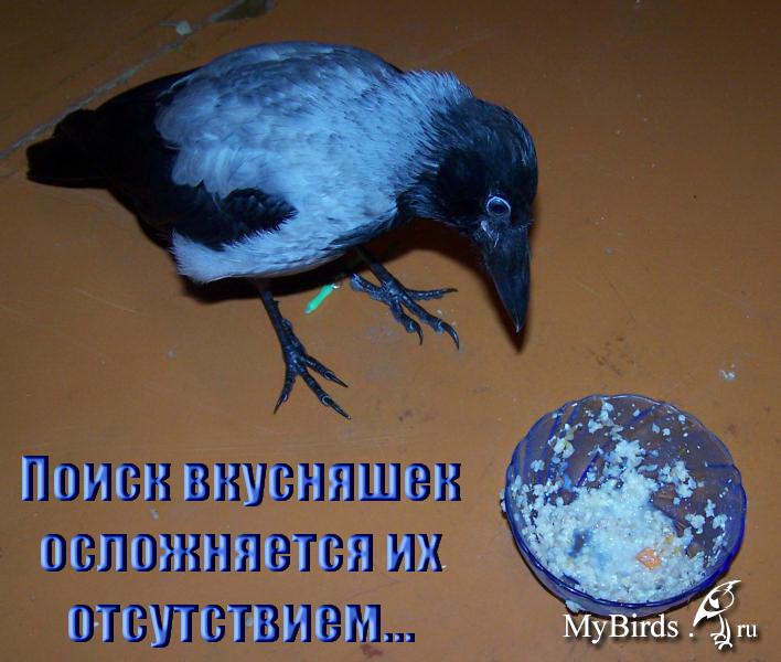 ai_u Опубликовано 19 июля, 2013 Автор #22 Опубликовано 19 июля, 2013 На физии птицы явное недоумение - есть две одинаковые миски. При уборке вольера грязная уносится, а наполненная свежим кормом приносится, но на время уборки ставится подальше от вороны, чтобы, не дай бог, вне вольера трапезу не начала - срач будет неимоверный. А на фото грязную миску с остатками каши, куда птиц ещё и воды наплескала, вынуть вынули, но не унесли. А у вороны, естественно, квест - найти полную чашку и начать раскидывать нямку. Дальше и так понятно