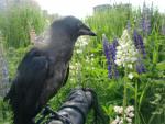 Корвиана Опубликовано 22 июня, 2013 Автор #227 Опубликовано 22 июня, 2013 А теперь про Великого Граниана)) Перед прогулкой Гран вылетел из клетки и долетел до меня! руки у меня были опущены и он на рукав зацепился и стал залезать. Что же он не слетел на диван, который перед клеткой? полетел куда-то вбок, ко мне! На улице:Слетел с руки, пролетел маленько, а потом поскакал по земле прямо ко мне, я наклоняюсь - на руку сразу сам заскочил А еще.. Погулял он на земле. Я тут чутка отвлеклась - распутывала должик, который завязался замысловатыми узлами. А Гран как подпрыгнул и ко мне на штанину зацепился и стал карабкаться. Это что за прикол, он ко мне стремился на ручки? Обалденное чувство)) Выходной, и мы наконец-то погуляли с фотоаппаратом. И фотки получились) Я большооой! - это он вольно сидит, не придержанный, но обычно я его придерживаю за опутенки в районе вертлюга и поводок на пальцах петлями намотан) Как-то мы шли мимо собаки и грач, крикнув, сорвался, так что очень пригодилось придерживание! Он не повисает, а летит куда-то на одном месте, сажаю на руку. Но его такие срывы - большая редкость! - Да не, я вырасту и стану вороном! Было жарко... Мы гуляли и на солнце и в тени. Так, место у реки было занято какой-то парой, жгущей костры, и нам пришлось гулять прямо за домом. У нас там люпинов просто обалдеть много, фотик только малую часть захватил. Много синих-фиолетовых, а еще розовые и белые есть. Личико! Белые люпины, говорят, они рееедкость... Я понимаю птенца - вижу, пить он хочет или есть, если пить - вытягивает шею, открывает клюв и реже орет: Кушать он просит, если очень голодный - машет крыльями, если просто голодный - орет, открывая и закрывая клюв, если практически сытый - лениво открывает клюв с таким скрипящим писком)) Иногда при жаре еще пытается искупаться в баночке, так его жалко становится) -это ему жарко. А на фото выглядит будто орет.Но он себя хорошо вел на прогулке) - тут видно что перышки на горле белые. И пошли мы в тень. Пошли вдоль деревьев и встретили двух слетков сорочьих) Большенькие уже такие, перелетают, на ветках пусть не такие шустрые как сороки, но крепко хватаются. И хвостики приличные) А трескоту-то было! Возвращались домой. Какой-то мужик со стойки (тут у нас соседний дом еще строится) спросил издали: "охотничий?" Я Грана спрашиваю: "ты охотничий?" Он мне: Краа! Мужик: "видишь, говорит что охотничий!"))