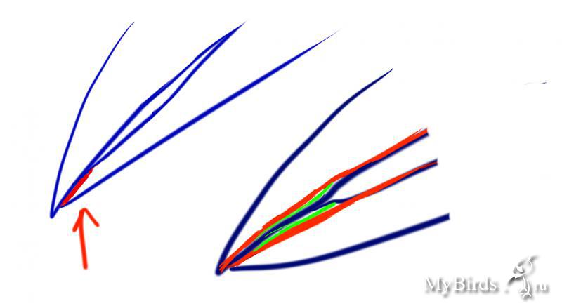 Корвиана Опубликовано 14 сентября, 2013 #276 Опубликовано 14 сентября, 2013 В клюве видна щель, которую никак не получается убрать( Подозреваю, что это не очень хорошо, т.к. клюв получается как бы всегда открыт. Пилите нижнюю челюсть изнутри, может помочьЕсли вы внимательно близко присмотритесь, то возможно скорее всего обнаружите на кончике клюва птицы такие как бы расширения в высоту... то что обозначено ярко зеленым. красной линией на нижнем обозначена прямая линия вдоль краев клюва, так вот эти расширения как бы выходят за край... а на верхнем собственно зона легкого подпила