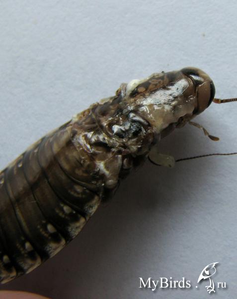 Dezmond89 Опубликовано 27 июня, 2013 #1 Опубликовано 27 июня, 2013 (изменено) Мраморные тараканы, как кормовые насекомые для стрижей очень хороши, поскольку птицы с них быстро набирают вес, и помет с них замечательный. Однако надо сделать оговорку: ценны они лишь в том случае, если сами растут на хорошей богатой пище и не являются плоскими задохликами, весь объем брюха которых занят раздутым желудком и кишечником, без всяких следов жирового тела. Хорошие тараканы объемны, при надрезе из них обильно выступают чуть желтоватая мутная гемолимфа и чисто-белое творожистое жировое тело. Особенно хороши нимфы последнего возраста – крупные черно-коричневые бескрылые личинки. Они сочны и обладают довольно мягким хитином (особенно накануне линьки). Разделка одного взрослого крылатого таракана при известном навыке занимает полминуты и меньше и состоит из нескольких шагов: 1) маникюрными ножницами отрезаем лапки (одно движение ножниц на каждую пару лапок) сохраняя при этом тазики - самые ближние к телу членики, поскольку в них содержится ценная мускулатура. 2) Одним движением ножниц, запустив их сразу под основания обоих пар крыльев, отрезаем крылья. 3) Двумя–тремя движениями ножниц, быстро подрезаем острые края жесткой пестрой переднеспинки так, чтобы она стала лишь маленькой пластиночкой. Не нужно срезать ее целиком иначе мышцы грудки утратят опору, тушка таракана станет "тряпичной" и ее тяжело будет погружать в клюв птицы (особенно при сопротивлении последней). Таким образом, спинка подрезается только по краям, не затрагивая нижележащих мышц и тогда все «мясо» остается при таракане. 4) Начиная с заднеспинки (ее можно немного «пожевать» ножницами, разрушая внутренние хитиновые распорки к которым крепится мускулатура) и кончая самым концом брюшка, на спинной стороне тела делаем продольный надрез. Цель его состоит в том, чтобы плоское и широкое брюшко таракана потеряло свою ригидность и с легкостью бы сжалось с боков принимая удобную форму при прохождении по пищеводу. У самок таракана (они самые большие, брюхо тугое и в нем при вскрытии видна продолговатая пачка желтых яиц) нужно прямо внутри брюшка, не вынимая кончиков ножниц из разреза, раскрошить этот пакет яиц, чтобы все яйца оказались вспоротыми. Цельные яйца с ненарушенным покровом не перевариваются, а ведь в них очень много легкоусвояемого питательного материала. У личинок мраморника достаточно только тремя движениями отрезать три пары ног до тазиков и сделать продольный надрез тела. Также информация от пользователей Аnysya и Dezmond89 Правильно откормленные мраморные тараканы - исключительно полезный и питательный корм. Голову тараканов следует раздавить, художественно срезать края хитиновых пластинок за головой (из-за острых концов, которые могут травмировать пищевод стрижу). Если отрезаете брюшки и видите полный желудок - удалите его. Изменено 23 августа, 2020 пользователем Litera чтобы сделать размещение информации компактным