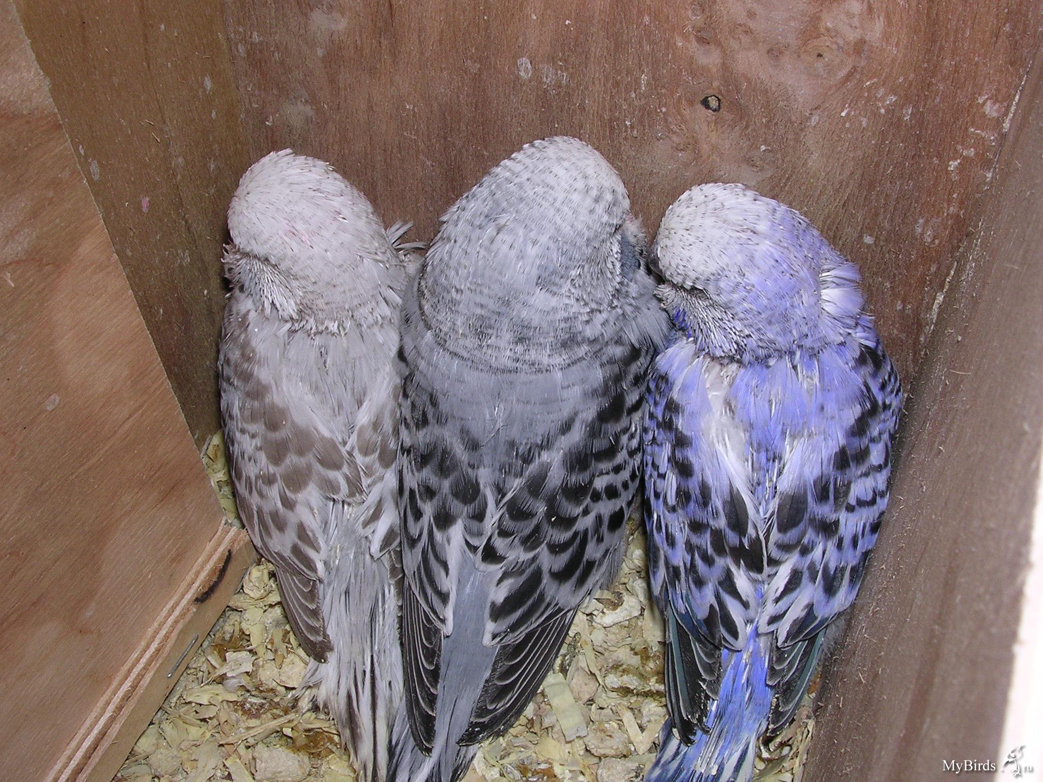 Malinka-Ukraine Опубликовано 2 января, 2011 #41 Опубликовано 2 января, 2011 фото родителей,правда,без коррекции. папа фиолетовый,мама оливково-зеленая с фиолетовым фактором.дети первые 2 такие как на фото,третий фиолетовый паровой с серой волной,четвертый как первые 2,пятый кобальтовый вроде,шестой непонятный,седьмой судя по всему будет тоже паровой-красноглазик Вот мои подросшие птенцы.На фото чуть ярче получились,в жизни чуть бледнее,и животики бледнее,чем надхвостье По итогам сегодняшнего осмотра 2 птенца паровые фиолетовые,4 птенца фиолетовые нормальные,один пока неизвестного окраса.Для меня это большая неожиданность-оливково-зеленая самочка-и все птенцы синего ряда... приятная неожиданность первые 2 фиолетовые и паровойодин все же зеленого ряда Фото первой троицы ПОльга, не скажите.я сравниваю реальный цвет и цвет фото.вставляю их фото без коррекции-но это вообще не их цвет.так как людям понять,что это фиолетовый птенец,а не ... даже не могу описать цвет,который получается на фото а на фотках получаются обычные синие... Странно это все.Может,потому,что фиолетовый больше всего проявляется на солнце и при свете лампы-в полумраке они как синеватые,что ли... В реале под лампой обыкновенной цвет выглядит именно так,только общее впечатление бледнее,за счет пуха,поскольку сами перышки на свету лампы очень блестят-я где-то писала,что фото получилось ярче,чем птенцы в жизни.еще и всех членов семьи спрашивала,держа птенца и компик рядом,не приврала ли я-все сказали,что на фотке ярко,а в жизни бледно,но цвет один.самец тоже под лампой насыщенный фиолетовый,а в полумраке - синевой отдает.я бы не вставляла,если бы цвет был другой.ниже их же фото без коррекции.как вырастут,откорректирую их цвет до деталей,и с фото-оригиналом вместе выложу фото без коррекции