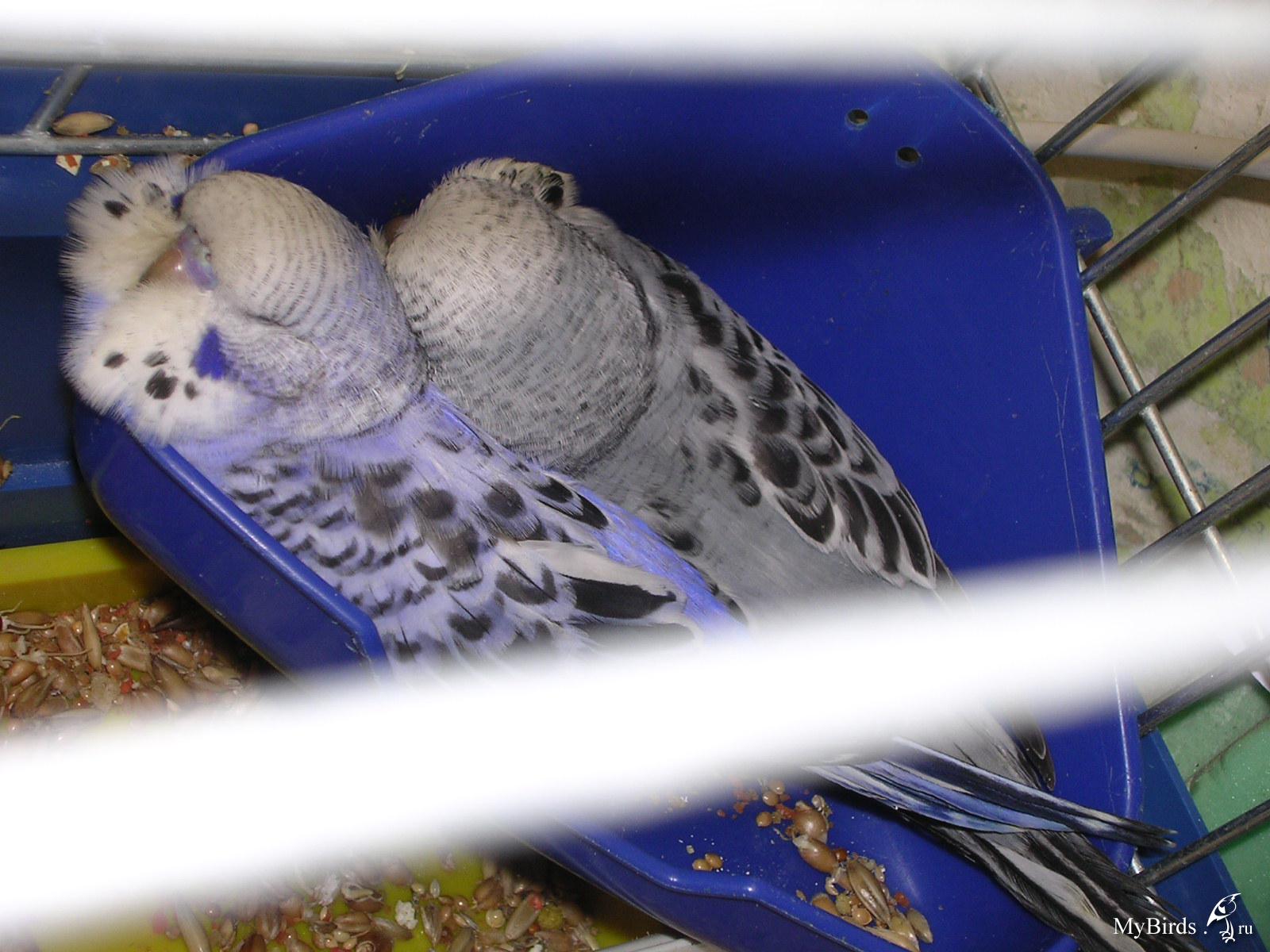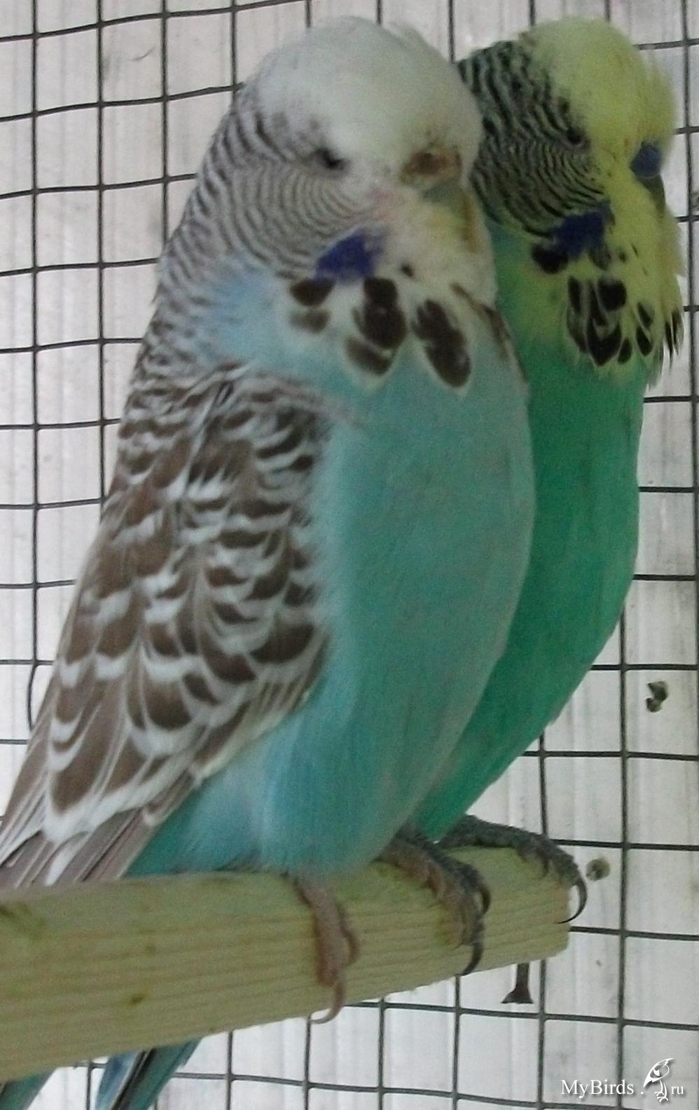 nik-x Опубликовано 1 января, 2011 #34 Опубликовано 1 января, 2011 Кто из форумчан имеет опыт разведения истинно фиолетовых волнистых попугаев простого или выставочного окраса. У моих получились интересные малыши.Мальчик истинно фиолетовый ещё не было первой линьки (фото не передало цвет в полной мере), девочка с фиолетовым фактором (платочек на шейке).Покажите Ваших питомцев На фото с левой стороны, желтолицый второго типа спенгл мальчик, с правой, двухфакторная девочка - носитель фиолетового гена.Истинно фиолетовый - цвет фиалки, без примеси синего.