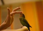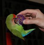 Bamboo Опубликовано 22 июля, 2013 Автор #19 Опубликовано 22 июля, 2013 В общем, приручение пришлось начать с начала. Для достижения максимально быстрого эффекта пришлось задействовать такое свойство неразлушьего характера как завистливость. Дождавшись того момента, когда Тори перестала шарахаться при приближении, я начала в клетке предлагать вкусняшки с рук, но не ей, а Раде. Он, естественно, отказываться не стал. На дцатый раз Тори обиделась на такой расклад и сама потянулась за едой . С командами произошло то же самое. Дожидаясь игривого настроения у птичей, я минут по 15 ежедневно восстанавливала навыки у Ради, Тори поняла, что все вкусное проходит мимо нее, и пошла на контакт.Еще одна хитрость, на которую пришлось пойти: птичи ну никак не желали грызть сепию и минеральный кирпич, тогда мы развесили эти полезности по местам попугайных тусовок. Сработало! Минус – жуткое количество крошек. Еще подарила попугайкам свою чашку. Почему-то они решили, что если я пью оттуда, то внутри что-то очень вкусное . Ну я и положила внутрь очередной кусок сепии и мелкие игрушки. И чашка стала мини-присадой. А позже научила их складывать туда монетки – команда «копилка».Сейчас птицы с удовольствием идут на контакт. Единственное, что они еще запрещают – это трогать их пальцами. Ну да, пальцы такие страшные – целых десять, да еще на каждом по клюву Ну ничего, мы же никуда не торопимся этот зверь тоже будет с нами жить? 1