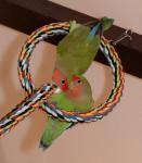 Bamboo Опубликовано 21 июля, 2013 Автор #17 Опубликовано 21 июля, 2013 (изменено) Не буду больше о грустном. Лучше расскажу про птицесчастье. Несмотря на то что Тори появилась у нас спонтанно и под влиянием эмоций, выбор оказался очень удачным. Мы и не знали, что птицы могут светиться от счастья . Почесонам, обнимашкам и поцелуям не было конца. Не знаю, любовь это с первого взгляда или просто радость родственной душе, но это не так уж и важно. Думали из-за качелей будет драка. Ан нет, идиллия Кстати, данная модель качелей оказалась самой неразлушеустойчивой. Все, что было с деревянными арками, было на пару быстренько съедено. Еще оказалось, что Тори совершенно не желает кусаться . Поначалу приходилось ее брать в руки. Только головой вертела и делала огромными и без того большие глаза. Где-то через неделю осмелились их выпустить на прогулку. В скорости и легкости полета Тори немного уступала Раде, но в ее целом физическая форма оказалась весьма неплохой. К тому же она обнаружила интересную особенность: когда бежит по гулкой поверхности, например по картонной коробке, то топает, как слон. И в период повышенной шкодливости иногда подпрыгивает на месте, как амадина гульда на току Очень смешная птича Изменено 21 июля, 2013 пользователем Bamboo 1