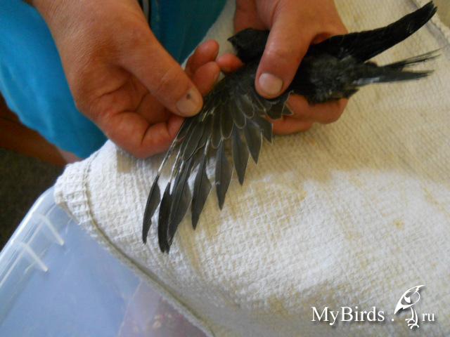 Мы по незнанию (спасибо "черным" сайтам!) кормили стрижонка мешанкой первые 4 дня, с того момента, как нашли. Крылья выглядели не так страшно, как у вас на фото, но трубочки удлиннились и из-под верхних перьев крыла стали видны вот такие треугольные просветы между маховыми. За неделю ТОЛЬКО на насекомых трубочки стали короче и просветы исчезли. Дальше перышки росли нормально. Сначала был виден на перьях этот период кормления мешанкой - участок примерно сантиметр-полтора был растрепанней и Уже, чем "до" и "после". Затем все выровнялось. Мне кажется, вопрос в том, на какую длину уже успело вырасти деформированное перо на мешанке. Ну и не полетят ли перья вообще:(