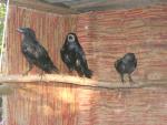 Myosotis Опубликовано 3 августа, 2013 Автор #4 Опубликовано 3 августа, 2013 ох, нет... в нашей стороне черных ворон нет . грачик который самый старший, Кипарис, попал ко мне с двумя дырками в груди. раны залечивала долго, потому как там и нагноение было, и глубокая одна очень. после заживления мышцы крыла атрофировались. он очень спокойный с самого начала был. пеленание мне не нужно было во время процедур, он сам лежал на спине на моих коленях. при мне не ел, только через две недели по тихоньку начал. когда окреп отправила в вольер. на мои старания разрабатывать крылья когда садишь на руку, держишь пальцы и поднимаешь по восьмерке отказывался сидеть и обвисал , и все равно ему что так либо ноги можно пооткручивать либо шмякнуться об пол. по характеру скорее меланхолик- тормоз... но зато само спокойствие. никаких лишних звуков, никаких паник. а просто здоровая оценка ситуации. зимой в вольере мерз потому что ему и не летающему хорошо жилось, кормят поят ,что еще надо, летать не обязательно. до -15 -20 выдерживал нормально но чуть выше - все, мерз. поэтому постоянно на холода забирала в дом. сейчас по тиху крыом начинает пользоваться, но все равно оно худое какое то. трубочки старых перьев длинные и белые когда крыло расправлешь, но оно уже практически не висит, а в начале он его вообще подобрать не мог. грачишка что сидит внизу - это всем известная Клякса. держится в сторонке ото всех потому как часто захожу покормить и видимо не хочет туда сюда слазить. ей и так в этом проблематично, потому как видит только с 10 см от себя, при этом долго присматривается, либо в метре если я в белом и на солнце стою. тогда даже на спину залетает. я вот уже думала может жерди побелить? купалку и кормушку она уже запомнила где стоят, часто забираю ее в дом так как нам пообщаться охота. а это дело она любит. даже в гости с ней ходили уже. подруга попросила - приди покажи уже свою кляксу! всю дорогу несла ее на руке, она грудкой прижалась к моему животу и что то там на кофте пощипывала и что то мне говорила. понять бы что? сегодня либо мне померещилось либо не знаю но я с курицей нашей разговаривала, она ручная у нас, так через пару минут Кляса очень похоже повторяла кококанье или просто совпадение не знаю, но два раза даже на мяуканье похоже было. в общем либо я уже "того" либо птиц будет говорун. просто от своих остальных грачей я таких звуков не слышала. оно и понятно, не ручные и не разговорчивые, а тут вот... не рано ли? мне казалось это попозже начинается... второй молоденький грачик который на верху с Кипарисом и галкой сидит, скорее всего Кишом станет ( Киш) , посмотрим приживется ли имя, это тот грачик о котором я в ветеринарии тему создавала, перелом лучевой кости. все зажило и птиц крылом пользуется, залетает с низа на самую внрхнюю жердь, с трудом, но залетает, особенно когда чего то испугается. но некоторые перья на больном крыле неправильно расположены, видимо фотра крыла изменила. но крыло подтягивает. оно редко когда провисает и то совсем на чуть чуть. дикареныш - оно и понятно - ловили каждый день, бинтовали, обрабатывали, всякую бяку в рот сували, не до любви тут. поэтому вид кушающей Кляксы с моих рук больше всего вызывает недоумение именно у него. он даже покрякивает иногда от недовольства. вот и не знаю как с ним поступить. пытаться его приручить или нет. для приручения его отсаживать нужно