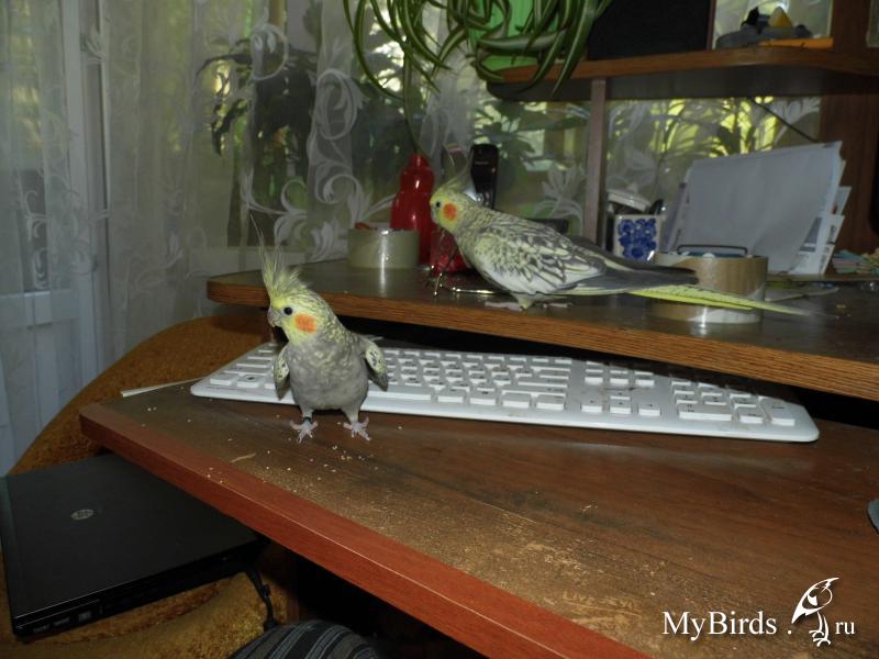 Дерутся, делят жердочки, веточки... но везде вместе... Как только Ксюха на моей голове уезжает из комнаты, где они гуляют, паника у обоих))