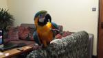 Муж говорит что он просто крупный экземпляр из боливийской популяции сине-желтых, и что они немного крупнее обычных. что-то между зеленокрылым и гиацинтом. Длина от клюва до кончика хвоста примерно 106 см, если он лежит на спине.