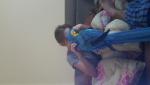 Он вообще не летает сейчас, я пыталась его стимулировать чтобы крыльями помахал, так он прижался к мне что мне стало его жалко. Муж приходит домой, Ясон к нему на колени, как раз сейчас он в кресле сидит, на него стена упала, и все целый вечер сидит там. Алмаз на плече, Умка на руке, Ясон на коленях. он как привидение любителя птиц)))