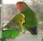 enova Опубликовано 22 июня, 2006 Автор #10 Опубликовано 22 июня, 2006 а эта дружная команда в одной клетке тусуется или у каждого своя квартира?145530[/snapback] Конечно в одной. Мне б пришлосы выезжать из комнаты, если б в разных. Я из-за клюва родственную связь найти решила145518[/snapback] Сама не могу понять почему у мальчиков такой. Нет в пятницу у меня экзамен, попробую в выходные выбраться. тут ещё эта жара нарисовалась. Расскажу немного про привычки. Фрукты-овощи пыжики не едят. Мне кажется отучились, т.к. их родственники ели. Любят сидеть на клетке с амадинами-удобная присада. Песок не едят, зато когда выпускаю сразу бегут есть землю из горшков цветочных. И не говорите про гельминтов, всё понимаю, но что поделать.Девочки не летают. Синенькая слабенькая стала, а белая разжирела. Когда белюю застовляю летать, она крыльями машет как вертолёт при посадке.Белая с некоторых пор взяла моду всё грызть. Уже камень в клетке почти изгрызка, а про жердочки и не говорю.Любят купаться, особенно в мокрой зелени. А так же общаются, в плане переговоров на растояние, с воробьями. Любят наблюдать за синицами и трясогузками.В целом привыкли жить в дружной птичьей компашке. Когда клетку с неразлучницей переношу на балкон, она начинают звать друг друга.