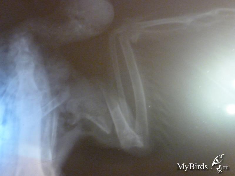 " А насчет фиксации......Расскажу о своем случае. Подобрала своего 1 мая. Врач сказала "воспаление сустава". рентген не стала делать " все вижу, перелома нет". Травматин, гамавит и массаж сустава с травмагелем. Все делала. Через месяц намекнула на рентген - опять отказала. Поехала в другую клинику на цифровой рентген и ..... мама дорогая ! Перелом со смещением, с осколками, осколки даже в сустав отлетели! НИЧЕГО НЕ СРОСЛОСЬ ВООБЩЕ!ДАЖЕ НАМЕКА НЕТ! Другая врач по рентгену ставит диагноз "остеомиелит", назначает антибиотики и без фиксации отпускает, якобы "само срастется". Я, уже не доверяю никому, иду к травматологу- орнитологу. Есть тут известный доктор Колотов. Он смотрит снимок - НИКАКОГО ОСТЕОМИЕЛИТА НЕТ, АНТИБИОТИКИ НЕ НУЖНЫ И ДЕЛАЕТ КРУГЛЕЙШИЕ ГЛАЗА - "ПОЧЕМУ ВЫ МЕСЯЦ НАЗАД КРЫЛО НЕ ЗАФИКСИРОВПЛИ????" Я в ауте.....Ведь делала все, как говорил врач. В итоге зафиксировал крыло в двух местах пластырем - в месте перелома и в конце перьев, ближе к хвосту. Но Петруша все снял. Пришлось фиксировать лонгетой повторно. И вот результат - срослось, криво ,конечно, но Душечка пытается летать, подпрыгивает у окна.