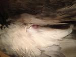 Алёна В. Опубликовано 18 сентября, 2013 Автор #6 Опубликовано 18 сентября, 2013 (изменено) маленький принц, Спасибо за ссылки и наводящие вопросы.1.____Кровотечения, в т.ч. из клюва или клоаки (следствием внутреннего кровотечения может быть также помет темно-красного, черного цвета), раны, царапины, пулевые отверстия, гнойники или прыщи на коже. Обязательно надо взъерошить перья - часто раны остаются незамеченными именно под перьями Помёт мне показался слишком тёмного цвета2.____Неестественное положение или обвисание конечностей, переломы, ушибы.не ходит, может привстать на лапах, но шагов не делает. Пальчики сжимает, лёжа на спине сучит лапами, когда беру в руки, упирается лапами мне в ладонь. Крылья открывает полностью, может ими махать, передвигается опираясь на крылья.пункты 3-7 нет8.____Наличие или отсутствие на суставах, костях или между костями шишек, опухолей, кровоизлияний, резких изломов или искривлений костей.на локтевом суставе правого крыла прощупывается уплотнение. Мне кажется, что когда я его только принесла ночью, то оно было чуть больше, чем сейчас, но я не уверена.Фото прилагаю. Больше уплотнений не нашла.9.____Затрудненность дыхания, хрипы, кашель. нет10.___Стоит проверить, видит ли птица, реагируют ли на свет ее зрачки. Для проверки реакции на свет можно в несильно освещенном помещении посмотреть на зрачок - он должен быть заметно расширен, после чего посветить в глаз несильным фонариком - зрачок должен быстро сузиться. видит[/b]11.___Проверить упитанность птицы. Киль прощупывается, но птица ещё не истощена12.___Сделать фотографию помета птицы и выложить в своей теме, либо описать сформированность, цвет, консистенцию, наличие воды. При наличии травм - так же сделать четкие их фотографии. Не помешает и фото общего вида птицы.фото помёта прилагаю. Помёт тёмного цвета.13.___Определиться путем наблюдения, может ли птица есть и пить самостоятельно. Ест и пьёт сам. С утра склевал ложку перловки с зерновой смесью для средних попугаев.P.S. на фото с шишкой что-то жёлтое - это пристала мусоринка, когда я смачивала перья. Изменено 18 сентября, 2013 пользователем Алёна В.