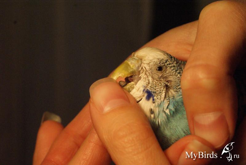 Йоа Опубликовано 21 сентября, 2013 #1 Опубликовано 21 сентября, 2013 Здравствуйте!Мне позвонили из минского кинотеатра, попросили посмотреть волнистого попугайчика. Это самочка, в вольере кинотеатра живёт приблизительно 2 года, раньше жила в семье в паре, несла яйца, сколько лет - неизвестно. Бывшие хозяева отдали в кинотеатр вместе с самцом, который до сих пор за самочкой ухаживает. Живя в кинотеатре, самочка не неслась.Кормят Вакой (знают, что корм плохой). Минеральная смесь Рио в вольере присутствует. В начале лета было замечено, что самочка выглядит слабой и её вместе с самцом отсаживали в отдельную клеточку, так как самец без самочки кричал и метался. Самочке стало лучше и их снова пустили в вольер через неделю.Сейчас самочка висела на сетке вольера, придерживая себя периодически клювом, цепляясь им за сетку и тяжело дышала.я привезла её к себе домой. Описав симптомы по телефону ветеринару (ветеринаров-орнитологов у нас в г. Минске нет), в клювик дало 0,1 мл катозала и 0,1 мл амоклава (разбавляла 500 мг на 20 мл воды). После этого птичка где-то полчаса дышала часто через клюв. Сейчас по прошествию часа, иногда тоже приоткрывает клюв. Язычок от кончика и практически до половины белый с тёмной окантовкой. Птичке тяжело сидеть на жёрдочке, пальчиками обхватывает жёрдочку неестественно, через несколько минут птицка одной лапкой охватила прутья, а вторую положила на жёрдочку. Клетку мне дали с собой.Клюв у основания и под восковицей темнее, чем кончик клюва, на восковице есть наросты. Покакала в воду. Фото не чёткое, прикреплю новое при следующем помёте. Помёт, на мой взгляд, не плохой, хорошо сформированный, только почему-то слишком обильный.