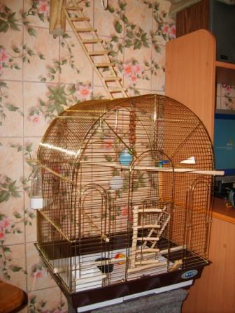 Verakoni Опубликовано 18 марта, 2007 #384 Опубликовано 18 марта, 2007 Всем привет! Начиталась тут у Вас всего интересного. Хотела тоже своим чего-нибудь сделать. Но места в комнате катастрофически не хватает. Вот и пришлось довольствоваться верхним пространством над клеткой. Вроде и нагромождать не хотелось и что бы птичкам понравилось. Конечно я оптимист и из всего ищу плюсы. Например, что расположенное над клеткой игровое место снижает загрязненность комнаты, т.к. все летит в клетку, которую я мою ежедневно. Вот. Представляю на Ваш суд свое первое творение. Оно конечно еще не доделано, но уже что-то, а главное, птички сразу поняли что это для них. И мне кажется им понравилось!!!Если кто-то что нибудь посоветует, буду только рада.