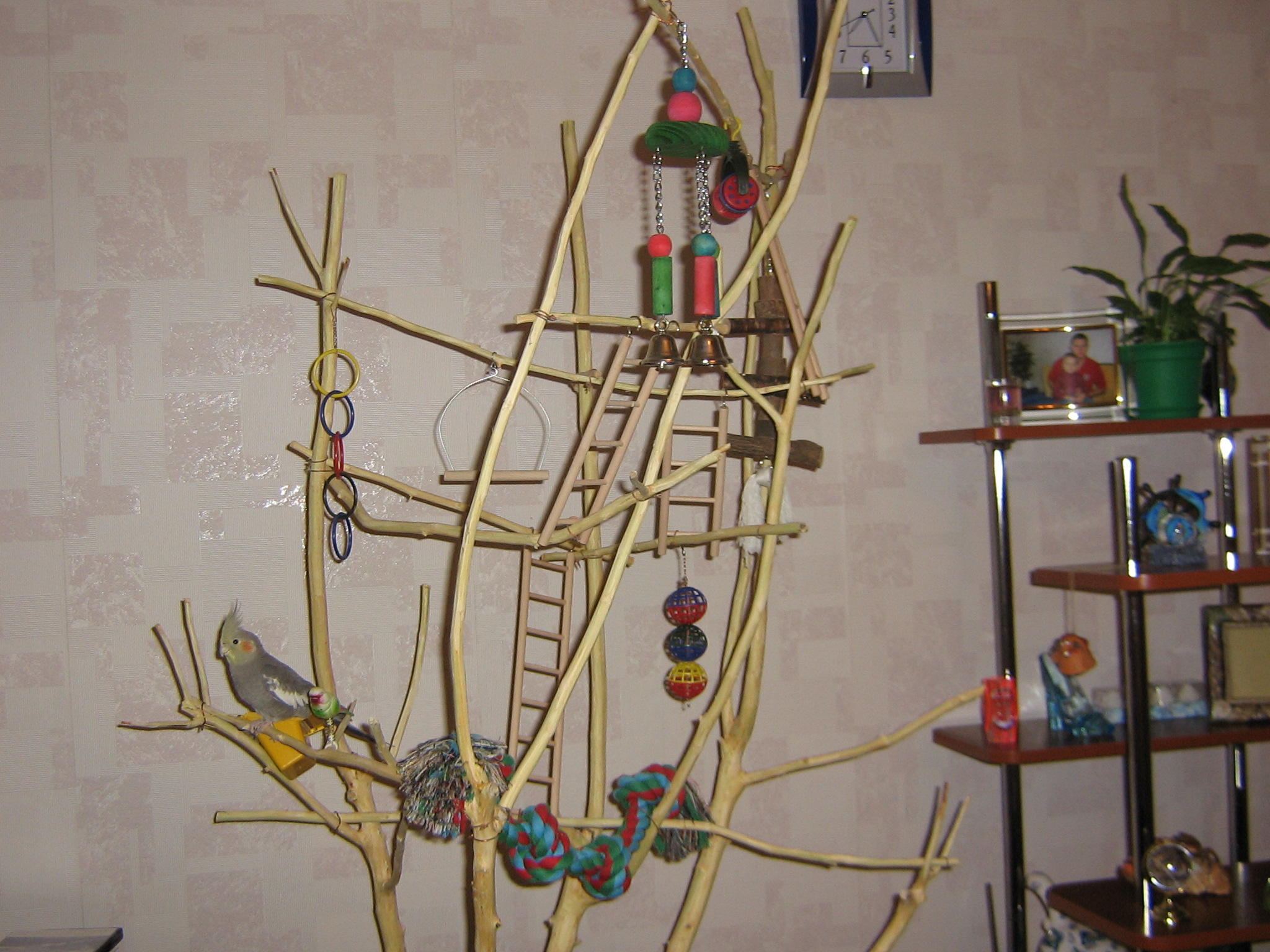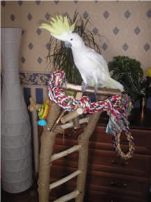 Irinonka Опубликовано 20 марта, 2007 #385 Опубликовано 20 марта, 2007 Привет всем! У нас пол-года назад появился прекрасный кореллчик по имени Мурчик (ну хотели мы с мужем кошку, а у мужа аллергия на шерсть, вот и взяли кореллу). Хороший птиц такой, умненький и разговорчивый. И решили ему игровое дерево сделать. Папа мой припер с дачи яблоню, мы ее обчистили и навесили игрушки (сейчас множество всяких игрушек продается в зоомагазинах). Вот решили выложить в интернет, может, кому идея пригодится. Пишите, если вопросы есть. ICQ:401008345