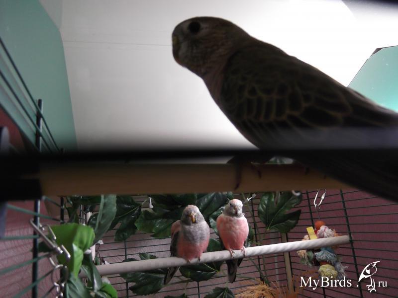 Анел Опубликовано 7 ноября, 2013 #5 Опубликовано 7 ноября, 2013 (изменено) Розовобрюхие очень спокойные попугайчики, относятся к сумеречным. Становятся более активными утром и вечером, это не значит, что днем они спят. Просто менее активны. Вечером и утром самец нежно приятно поет. В содержании не сложны. Ничего не грызут. Кормлю своих кормом для средних попугаев+корм для канареек или лесных птиц+семена сорных трав. Едят замоченное и проросшее зерно. фрукты. овощи. кашку. Отличные родители. О птенцах заботятся и после вылета из гнезда, Если идут на вторую кладку, малышей можно не отсаживать(при наличии, конечно, соответствующей клетки) В маленькой тоже обижать не будут, но.......тесно. это не есть хорошо. Любят купаться, купалка висит постоянно.Малыши тоже умнички, никогда не лезут в домик, если мама опять на яйцах. Хорошие птички. очень они мне нравятся.Лазурные и глянцевые немного не то. Глянцевых не держала. а лазурные более агресивные к своим птенцам и родители не очень. Может это мне такие попались?Вот мои малыши. Изменено 7 ноября, 2013 пользователем Анел