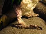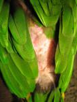 Черношапочный каик выщипал себе перья и пух на лапах (полностью), немного на крыльях и "налысо" на спине.