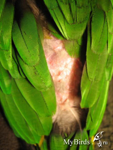 как раз после возвращения из отпуска. Т.е. сначала нас не было целую неделю, потом у меня был 1 выходной, а у мужа 2, т.е. попугай 4 дня людей видел только вечером. Вот на четвертый день вечером мы обнаружили ощипаные внутренние части бедер. Еще 2 дня семья была в полном составе, в понедельник мы очень поздно пришли, он не хотел спать, бегал по дну клетки и когда я его достала увидела, что он ощипал еще и попу и крылья местами.