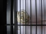 Сначала он возмущается очень, когда его в клетку сажают, а потом успокаивается и спит себе.