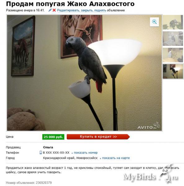 жаконя и к Опубликовано 18 ноября, 2013 #31 Опубликовано 18 ноября, 2013 Lexa0585 Да фотки мои Абрамчика а птицу продает свою моя подруга у нее дикарь и сидит в клетке попросила воспользоваться моими фотками что в этом такого. Оська, да ничего кроме, как то что ваша подруга тогда обманывает будущих владельцев т.к. в объявлении написано " гуляет сам заходит в клетку, дает почесать шейку, самое время учить говорить." Покупатель купит, на форум придет, а птиц окажется из клетки не ногой и за шейку руку откусит. Получается некрасиво