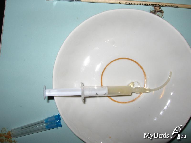 Vai_JLT Опубликовано 21 января, 2014 #31 Опубликовано 21 января, 2014 (изменено) Здравствуйте, я не очень многим могу помочь, но с помощью кормления через зонд вытащила своих амадин с того света. Парня в сильной степени истощения пришлось насильно докармливать 3 месяца, но это дало очень хороший результат. Бояться не нужно, т.к. метод опробован на птичках, которые в 2 раза меньше Вашего воробушка. Методика: Кормление через мини-зонд:- птицу тщательно упаковать в подследник. Чтобы он не расходился, можно закрепить край прищепочкой сбоку- под спинку птички подложить мягкую ткань, а под голову - небольшой валик из ткани- зонд был собран на базе 2 мл шприца и катетера для периферических вен G19 (очень повезло купить!)- клюв фиксировался в открытом состоянии при помощи зубочистки, затем пальцами- в пищевод и зоб зондом попала без проблем- после кормления птиц остался жив - потом шипел-ругался в клетке и переваривал кашу Теоретически, Вашему питомцу нужно съедать где-то 2 мл детской безмолочной кашки, разведённой питьевой водичкой. Я разводила на глаз, чтобы кашка легко заходила в шприц и легко из него выдавливалась.Скармливала Нестле 8 злаков. Немного грела шприц в руке, чтобы птицы не ели холодную кашкую Фото девайса: Изменено 21 января, 2014 пользователем Vai_JLT