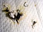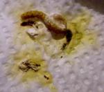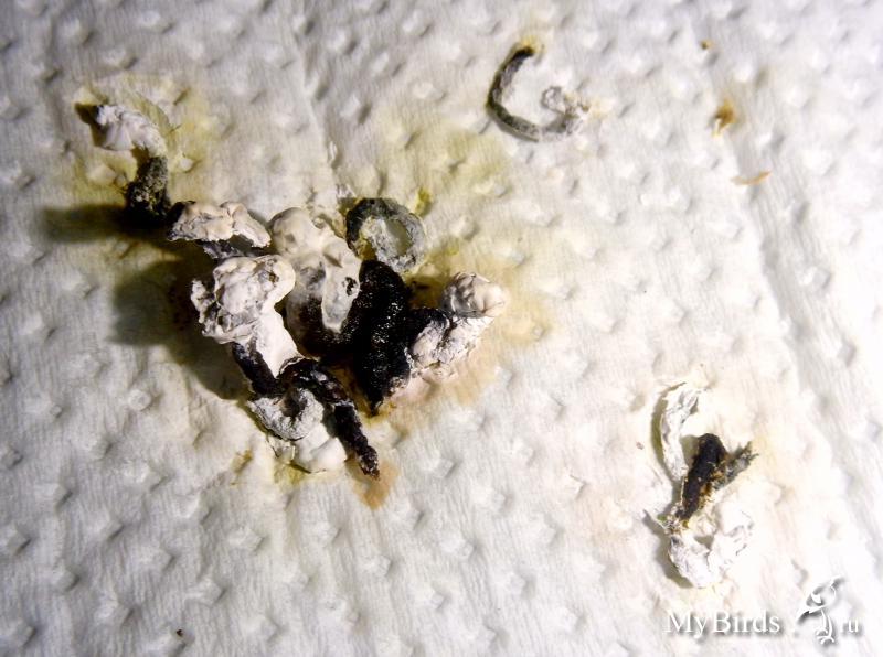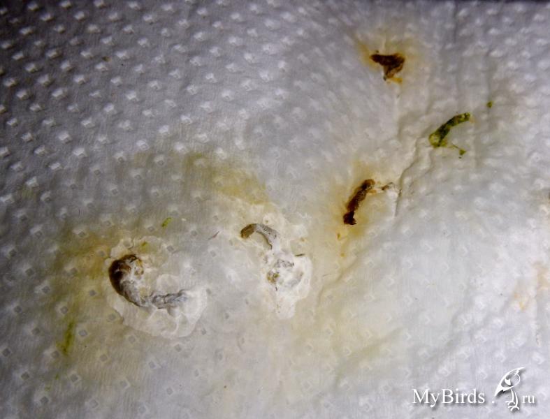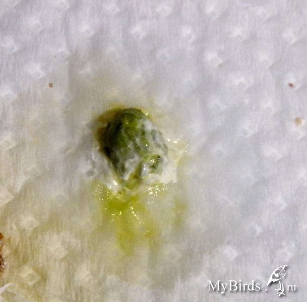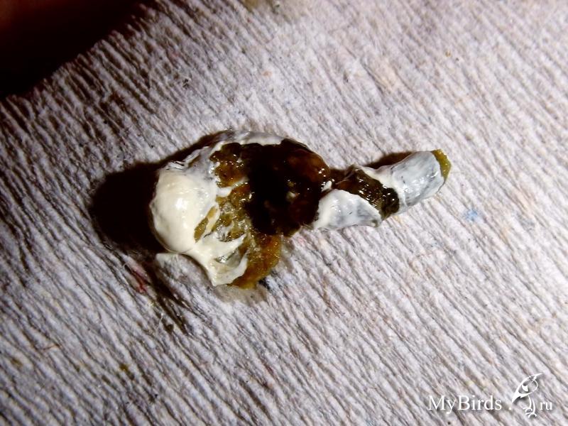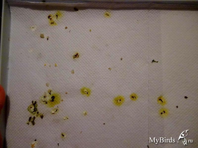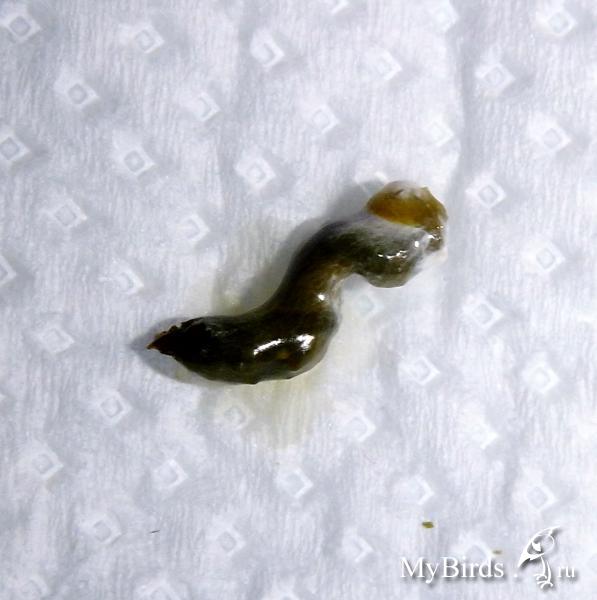 Zosia Опубликовано 20 января, 2014 #21 Опубликовано 20 января, 2014 вазелин.масло сработала после 1часа 15 минут (???почему так долго?) - в 16:15 она сходила вот этим-фото первое слева, второе фото слева - это я его растерла. Зеленое - п.что она ничего не может есть, я дала ей веточку укропа и салат - это она клюет. Зерно с рук в клетке не берет, а выпускать я ее не могу щаз- фиг потом поймаеш. вот что накакалось за день-там где зеленое это от салата+укроп Зосенька, тогда почему она НЕ ЕСТ??? ведь при глистах и тех же опухолях и яйцах - птицы ведь едят....И вот что странно - она НЕ ПЬЕТ!!!, к поилке не подходит (видать жидкости в кашке хватает)что мне СЕЙЧАС давать? - продолжать нистатин?что лучше дать - ношпу, кетапрофен или детский ибуфен??? - щаз сбегаю в аптеку - что имено купить и дать?? ИМХО только анальгетики и дексаметазон. Какие будут.