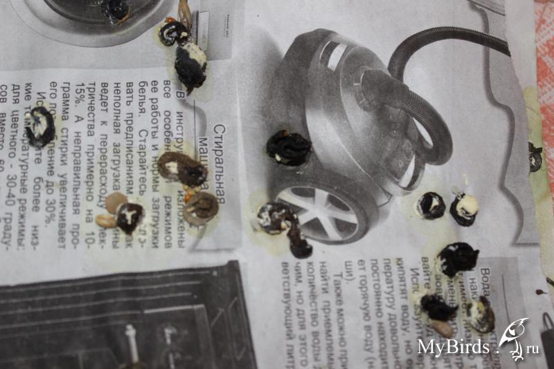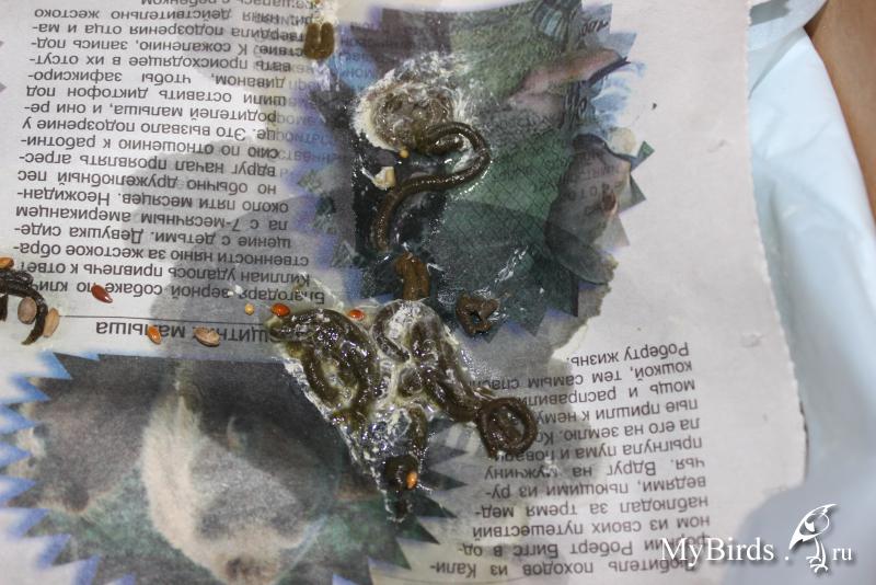 Таури Опубликовано 31 января, 2014 Автор #43 Опубликовано 31 января, 2014 (изменено) Вот и фото помёта семейки. Фото №№ 1 и 2 - помёт Малыша. Фото №№ 3,4,5 - помёт Мамульки. Зерно на фото, это не в помёте, просто птицы разгребают постоянно кормушки. Беспокоит, что у Малыша в помёте периодически появляется зелень, у Мамульки периодически какие-то несформированные коричневые кучки. Может это из-за корма? Может чем полечить? Анализы сдать проблематично, звонила узнавала, только в одной ветклинике могут, но не берутся делать((. Мамульке от вертячки даю также Пирацетам утром, глицин вечером, мильгамму в клюв, прочитала здесь на сайте о вертячных голубях. Мамульке и Малышу колю Витам. Ципролетом, карсилом, флуконазолом, курс 10 дней пролечила. Чем ещё полечить не знаю... Фоспренил только закончился,а в ветаптеке пока нет. Как поступит фоспренил надо ли мне его еще давать голубям? Давала фоспренил 15 дней. Мамулька стала подлетать на спинку дивана, Малыш ещё пищит, но уже пролетает 1-2 метра. Мамулька и Малыш кушают сами, зобик не пустой. Рассадила по разным коробкам, потому что Мамулька сильно топчется, не дает подхода Малышу к кормушке и иногда птенца поклевывает. Но в коробках они сидят редко,в основном гуляют-пасутся, кушают, и купаются в чашке на диване. Рыжик купается у себя в клетке, ставлю туда ему чашку с водой. Накупается и вылетает на шкаф, обсыхать. Пожалуйста посоветуйте по лечению голубей, надо или нет, если надо то что лучше. Изменено 31 января, 2014 пользователем Таури