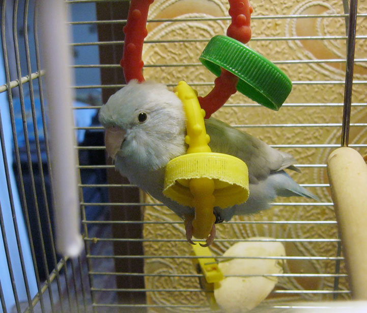 viraiv Опубликовано 11 января, 2015 Автор #46 Опубликовано 11 января, 2015 Купили на днях в Happybirds такую основу для гнезда, повесили в качестве веранды. Умка имеет склонность ко всяким укромным местам, подумали, может вспомнит детство, будет туда залазить. Для знакомство поначалу кинули пару семечек. Он быстро освоил новинку, какое-то время искал там семечки, а потом стал приходить туда чухаться. Дочка когда рядом сидит читает, очень удобно оказалось