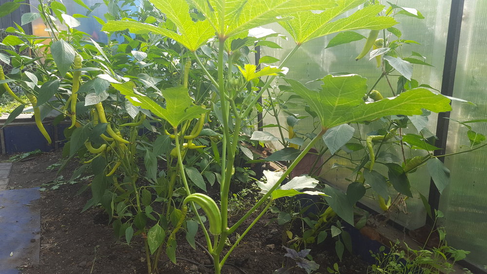 амазон Опубликовано 14 августа, 2019 Автор #954 Опубликовано 14 августа, 2019 Бамия начала цвести (жаль только что цветок утром расцветает и вечером отпадывает) и появились первые плоды. К сожалению из 12 посаженных уцелело пять. Пока разобрался от чего чахнут остальные загнулись. Первый плод по старшинству достался Маше. Слопала. 1