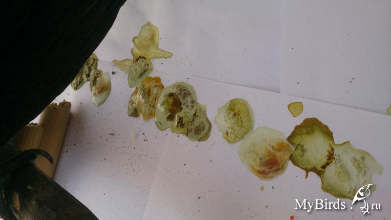 Denis_A Опубликовано 2 апреля, 2014 Автор #14 Опубликовано 2 апреля, 2014 (изменено) Привет всем! Большое спасибо всем за ответы!!! Начал больше изучать форум и читать другие темы - и действительно, форум как целая энциклопедия Сейчас утро. Собираюсь на работу - поэтому постараюсь вкратце. С Крошей все ок. По рассказам подружки(она иногда к нему заглядывает) Крошик сидит на одном месте но вроде бодро осматривается по сторонам.Вчера, когда пришел с работы Кроша все съел и его тарелочка с едой оказалась на полу.Открыл перед ним пачку купленного творога - тот аж с края присады потянулся. Жадно проглотил несколько кусков. Измазал весь клюв. Из рациона у него рис(каюсь, немного недоварил) который он по утрам ест с рук с огромным удовольствием. Немного баночной кукурузы и творожок. Творог перемешал с кукурузой. Вчера еще купил пачку гречки - но пока не готовил и не давал, т.к. еще немного риса осталась. Еще забыл про креветки - даю немного утром. Сегодня, правда, не давал)) Вчера вечером закинул ему японский ролл(рис, икра масаго, авокадо, водоросль) - ему не повредит наверно?? Пока что он его не съел. Под вечер, когда рядом сидишь - может заснуть, прикрыв один глаз(второй не вижу) На субботу записались к Александру Томашевскому. Спасибо Petrovskaya! Уже готов к тому, что Кроша меня еще больше возненавидет(итак стресс+перевозка+лечение). Сегодня куплю карсила, т.к. все пишут о проблемной печени у многих. Кстати, а ничего что он на как бы открытом месте сидит(балкон) и всегда видит других птиц(чуть выше перед нами даже гнездо воронье на дереве есть)? В общем он не будет еще больше злиться? Сейчас кстати пишу - а он активно и заинтересованно на улицу смотрит Вот пару фоток - еще помет его сфоткал- нормальный ли он? Все, убегаю на работу - спасибо большое всем!!! PS. Кстати - у него еще лежат вот такие "свертки" - это он отрыгивает впрок или что то не так?? Есть еще такие же, но зеленые PPS. По поводу зажигалки не волнуйтесь - никто у нас не курит - это ему как игрушка))) Изменено 2 апреля, 2014 пользователем Denis_A