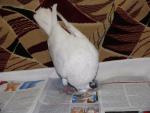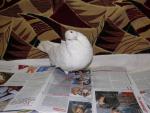 Verra Опубликовано 25 апреля, 2014 Автор #22 Опубликовано 25 апреля, 2014 Так, немного хороших новостей)Пришли результаты анализа на сальмонеллез - ничего не обнаружено, что не может не радовать) Сегодня еще отнесла помет в "9 жизней", сказали, что результаты будут в 8-9 вечера) Прихожу сегодня домой, открываю комнату, а там посреди всего восседает это белое пернатое и удивленно на меня смотрит)) Выбрался из коробки, засранец)) Т-т-т, головой стал крутить меньше, даже удивительно) Всего два дня колем лекарство) Птица возвратила обратно, он негодовал)