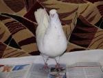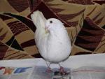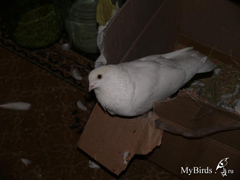 Verra Опубликовано 22 апреля, 2014 #1 Опубликовано 22 апреля, 2014 (изменено) Открою, пожалуй, отдельную тему.В воскресенье ко мне переехал голубь из этой темы. Разместив красавчика в коробке, на следующий же день я собрала свежий помет и отнесла его на анализ (Ньюкасла). Сегодня пришли результаты - отрицательные. Правда, где-то на форуме я прочитала, что вируса может не быть в конкретной порции помета. По всем внешним признакам это похоже на Ньюкасла. Видимо, завтра соберу еще помет и отнесу сдать на сальмонеллез. Интересно, что это за порода. Где-то в интернетах наткнулась на "белый спортивный", но что-то жирноват он для "спортивного") В меру упитанный, киль не торчит, весит 320г. Никак не могу сориентироваться в правильном питании, темы по кормлению почитала, но смущает вот это: Подбор рациона зависит от вида и возраста голубей, способа их содержания и времени года. Как бы ему так подобрать, чтобы все правильно было? Если кто-нибудь что-нибудь посоветует, буду очень благодарна. Просто необходимый начальный корм, а всякие вкусняшки я дополнительно давать буду.Еще интересно, девочка это или мальчик) Видела, что на форуме многие голубей с ходу определяют. Не знаю, по каким признакам, но интересны предположения)В общем, товарищ сидит в коробке, даже воркует иногда, сам ест, меня умеренно боится. В спокойном состоянии голову выпрямляет, но стоит подойти - наклоняет в сторону. Вот, собсна, сам красавчик: Изменено 22 апреля, 2014 пользователем Verra