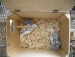Анастасья Опубликовано 27 мая, 2012 #684 Опубликовано 27 мая, 2012 (изменено) Какие все продвинутые)) Надо тоже генетику поизучать))1324462[/snapback] Это очень интересно! Уже трое деток нашли новых дом! ))1324462[/snapback] Поздравляю! А вы через интернет давали объявления или как? В какую темку мне лучше перейти по-поводу восстановления самочки после кладки. Она конечно чахлая, плохое оперение..иногда дрожит...боюсь за нее!1324462[/snapback] Вот этого не знаю. Может собственную создать в этом же разделе?Наши новости.Приятные:Сегодня сделала полную уборку. Вытащила все грязные опилки, кое-как отодрала налипший слой какашек (ну они и какают!!!), и то не полностью; все, что смогла. Насыпала опилок, ромашки. Отмыла всех от помета. В окрасе четвертого засомневалась. Вроде как темные ежики с белыми кончиками означает голубой будет птен, но проглядывает немного желтезны. Теперь не понятно какой будет цвет Но если она будет голубой, то тогда это будет точная копия папы Вот мы на чистеньких опилочках помытые:Неприятные:Разбила последнее яйцо - там был птен. Только я не поняла погиб ли он на стадии развития, или не смог вылупиться (я подозреваю последнее, т.к. яйцо было облеплено какашками) Интересный факт получается: кладка-то у них первая, а все 7 (!) яиц были оплодотворены. Во как! Изменено 27 мая, 2012 пользователем Анастасья