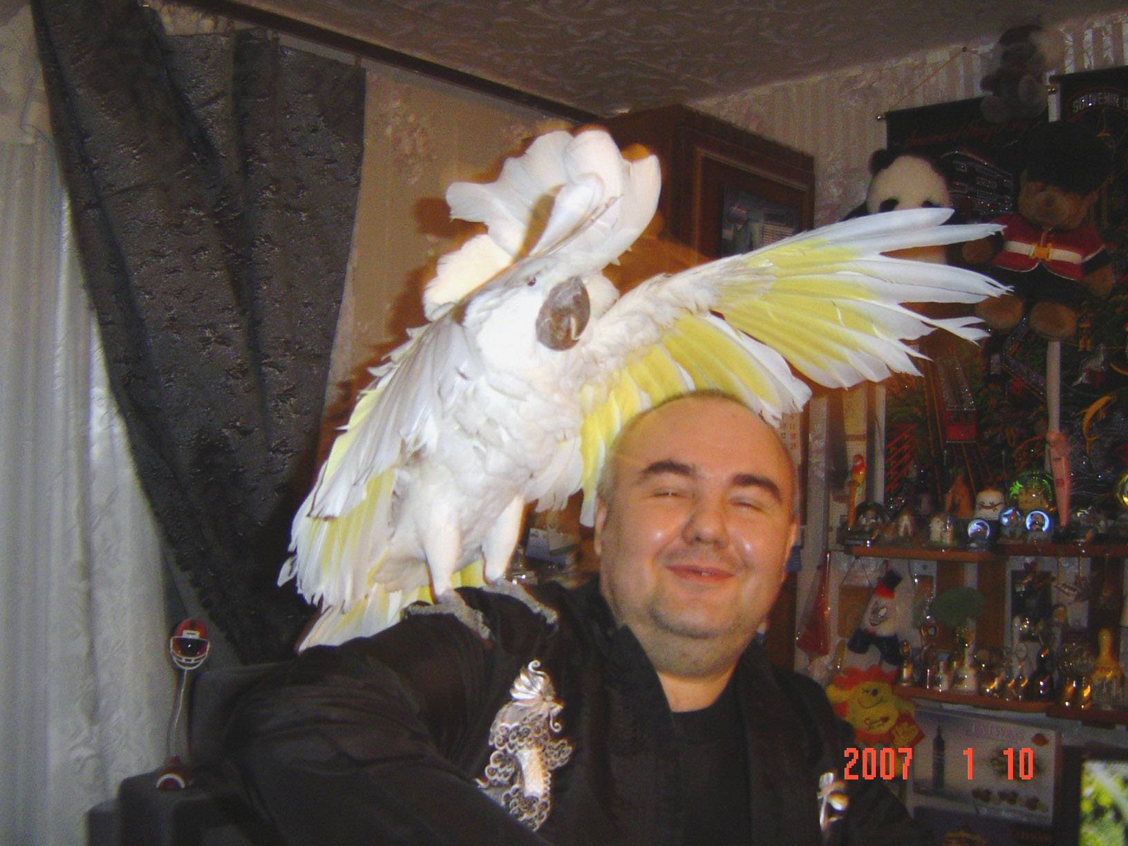 Andrew Worobyew Опубликовано 21 февраля, 2007 Автор #13 Опубликовано 21 февраля, 2007 22 февраля ровно 10 лет назад появился где-то пушистый комочек... Который потом вырос и стал белохохлым какаду, получившим имя Чип. 6 лет он прожил где-то, судьба его носила, он жил и в офисе тоже. И вот 4 года уже живет у меня.Почему 22 февраля? Ну никто же не знает практически - когда реально родился его питомец. 22 февраля 2003 года Чип появился у меня... Ну вот этот день и стал его днем рождения. Вот мой Чип в январе 2007 года, фотографии сделала приехавшая в гости bimiri.