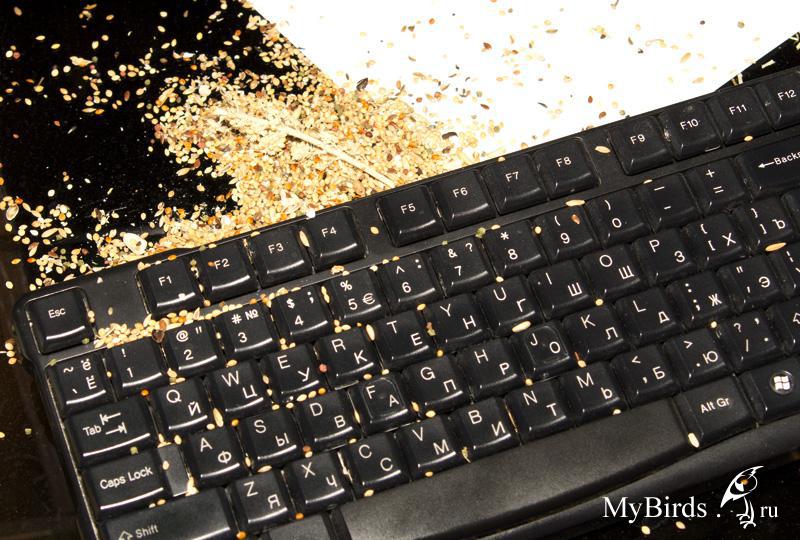 Bamboo Опубликовано 16 июня, 2014 #1 Опубликовано 16 июня, 2014 Милые птахи опрокинули целую миску с остатками зерносмеси, которую я собираю для уличных птиц. Попали аккурат на клавиатуру (а нечего оставлять еду где ни попадя). Получилось красиво. А как клавиатура дивно хрустит даже после тщательной уборки!