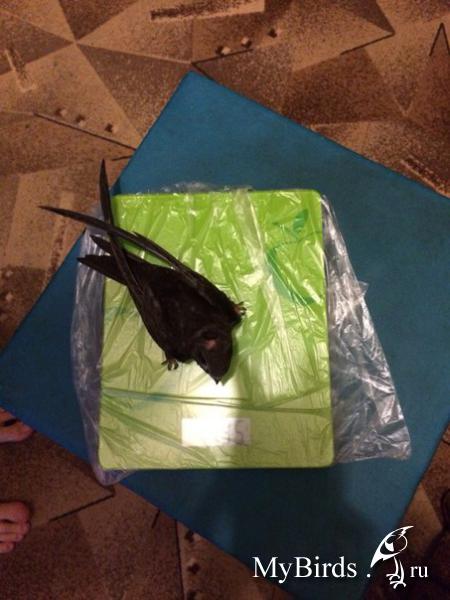 DashaM123 Опубликовано 23 июля, 2014 #1 Опубликовано 23 июля, 2014 4 дня назад нашли на проезжей части дороги стрижа. На голове у стрижа есть небольшая залысина. Врач сказал, что он возможно ударился, поэтому может быть травма черепно-мозговая(((Судя по все признакам птица уже взрослая(40-42 дня)Нашла сверчков, кормлю насильно по 5-6 штук 5-6 раз в день. Но очень боюсь при этом-каждый раз целое испытание, он же такой хрупкий. Возможно, для взрослой птицы я перекармливаю?Здесь мне уже помогли, дали контакты сведущего человека из Калуги, спасибо! Но посоветовали создать тему, что я и делаю.Вчера весь день он сидел достаточно тихо, ползает периодически. Если открываю коробку, то он сразу поворачивает голову и смотрит на меня. Где то в 23:30 стал очень сильно скрестись, покакал, пытался лезть по стенкам коробки. Я испугалась и достала его, положила на пол. Он расправил крылья и стал прытко ползать. Я его хотела положить обратно в коробку, а он обкакал меня и пытался полететь, но не смог и упал. но вроде бы не сильно ударился. Сейчас он весит 36 грамм. Вот его фото. Видно что на голове нет перьев, может это от удара?или кто его клюнул?Вопрос у меня такой-можно ли уже пробовать его отпускать? и не часто ли его кормить 5-6 раз?Я прочитала, что взрослую птицу нужно кормить 3-4 раза. Просто у меня сейчас сестра приглядывает за ним(я работаю), но через 3 дня она не сможет...Не знаю что делать?Я работаю 2/2 по 12 часов...Если только на работу его брать Сегодня опять в коробке скребется иногда, иногда покачивается взад-вперед.