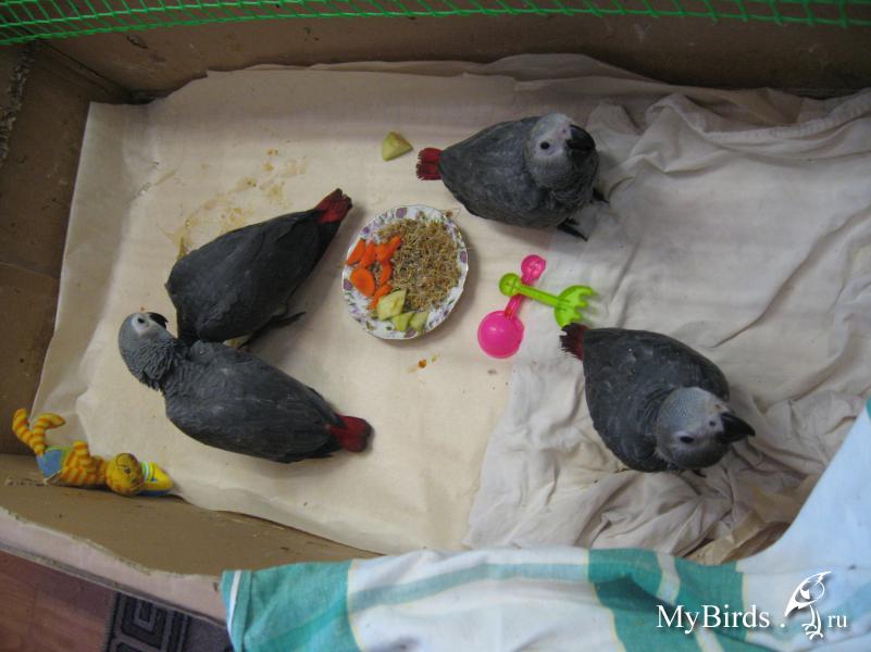 сорекс Опубликовано 5 августа, 2014 Автор #7 Опубликовано 5 августа, 2014 Лялька, спасибо, будем стараться! Вот и позвзрослели детки на неделю... Похоже, будет один парень и три девочки...Одна из них уже познакомилась с будующей хозяйкой. Пожалуйста, у кого были птены жако, посмотрите на фотки, мне интересно Ваше мнение по поводу полов деток, возможно я ошибаюсь?