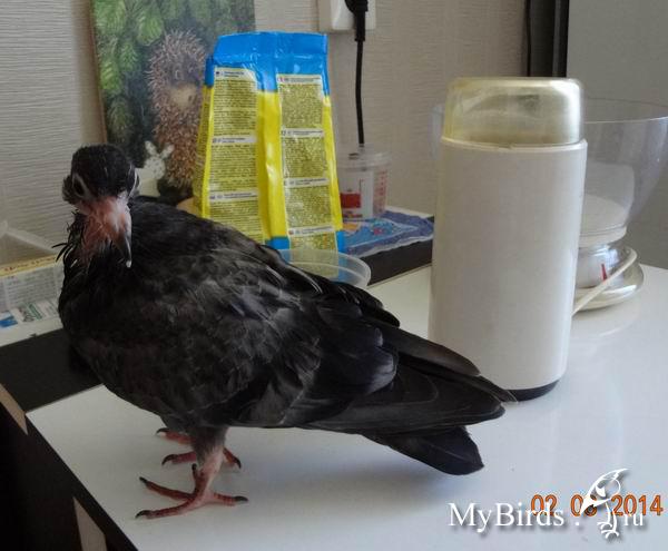 Здравствуйте! Спасибо за участие! Извините, давно не заглядывала. Голубенок почти самостоятельный, может есть, пьет, купаться любит. Активный и очень любопытный. Только вот никак не могу связаться с Сирином, что бы отправить его в вольер для одичания. Ребенок просто требует общения, и я думаю, ему необходима социализация среди соплеменников. Хороший малыш, только не совсем еще оперился. Шея и грудка еще только в трубочках)) И еще я обратила внимание, что не слишком-то он привязан к человеку. Доверяет только мне, а от незнакомых предпочитает убежать.