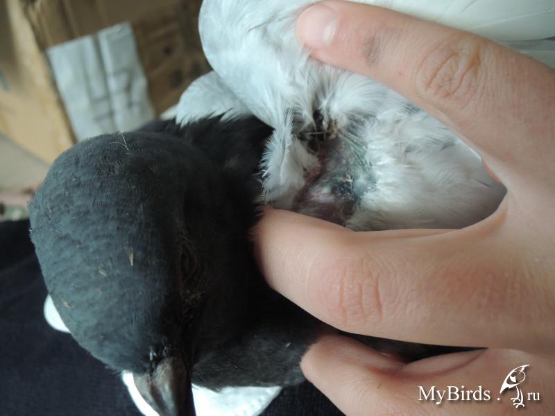 mowglis Опубликовано 27 августа, 2014 Автор #7 Опубликовано 27 августа, 2014 Фото получилось так себе. Первое - рана сухая, насколько могла раздвинула перья. Потом промыла хлоргексидином - две фото с намоченным местом. Такое ошущение, что порваны ткани "подмышки", где мелкие перышки растут, рана неглубокая, но с обратной стороны большой синяк! Это же синяк? Не представляю, откуда такая рана... Помазала левомеколем.Признаков чего-то, кроме раны не нашла. Ни соплей, даже горло вроде без слизи... Глаза промыла окомистином все-таки.Сам не ест, не пьет. Накормила кашей - просто жесть, никто из моих голубей так не вырывался. Кормила из шприца, потом уже миниложечкой запихивала. Скормила где-то 2 столовых ложки - зоб наполнился наполовину только, но больше ни он, ни я бы не выдержали. Все теперь в каше и малыш тоже. ОЧень пугливый! Может, его человек как-то ранил, первый раз такое вижу и пищит от страха, как видит руку. Помет жидкий, понятно только что голодный. ЗАвтра сделаю фото помета.Похоже, надо осваивать кормление через катетер, я просто оказалась совершенно неподготовленной к такому отпору.